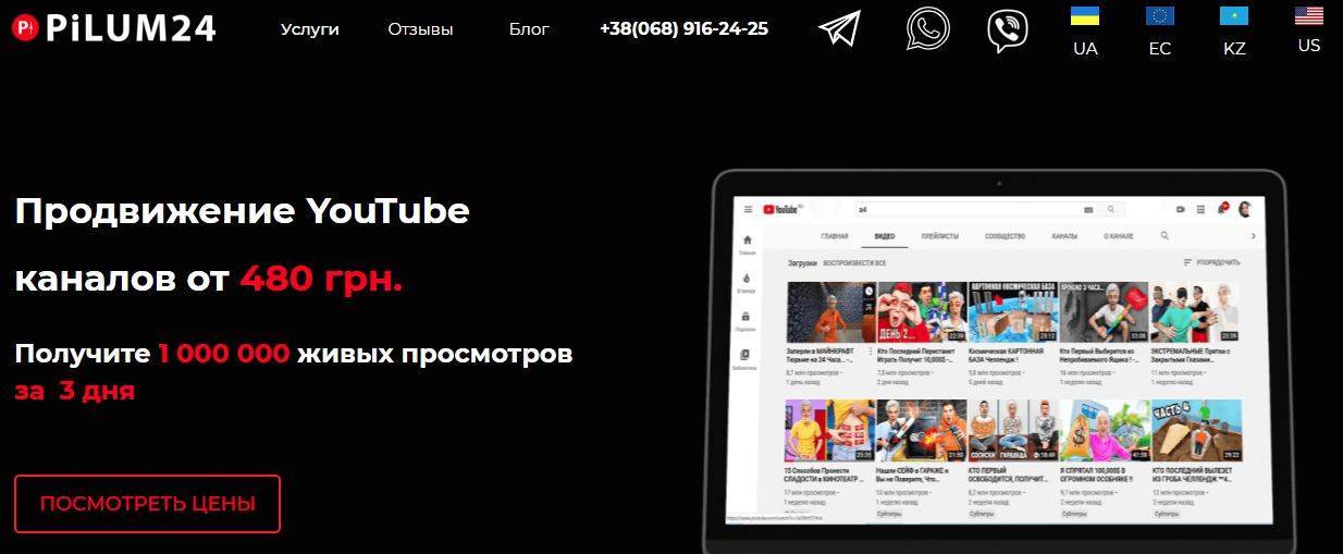 Pilum24 – cайт для раскрутки ютуб канала, просмотры, живые подписчики, лайки и комментарии для вашего YouTube канала.