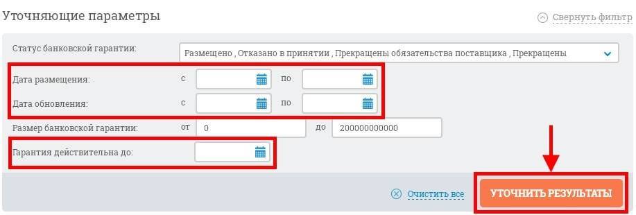 - ставим необходимый срок, уточняя параметры фильтра, и смотрим количество банковских гарантий, отклоненных за этот период;