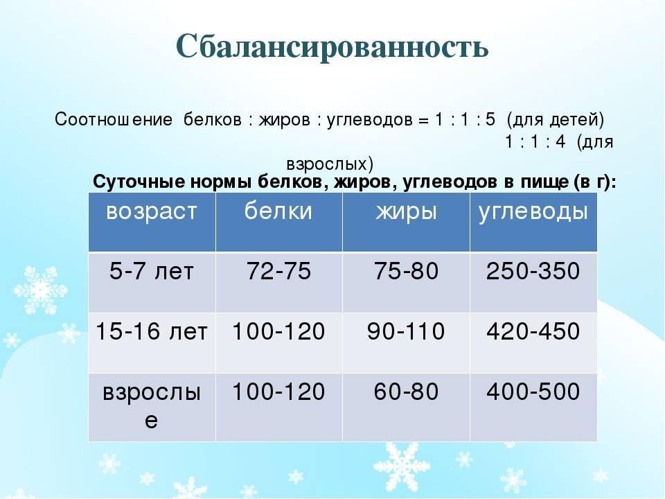 Взрослому человеку в день нужно от 100 до 500 г углеводов. Эта цифра зависит от образа жизни (сидячий или активный), интенсивности занятий спортом, роста и веса. Тем, кто занимается умственным трудом, надо съедать примерно 400 г углеводосодержащей пищи, а если физическим, — то уже около 500. Для более точного расчёта диетологи предлагают следующие формулы: 5 г углеводных продуктов на 1 кг массы тела (для офисных работников) или же 8 г на 1 кг массы тела (для спортсменов).