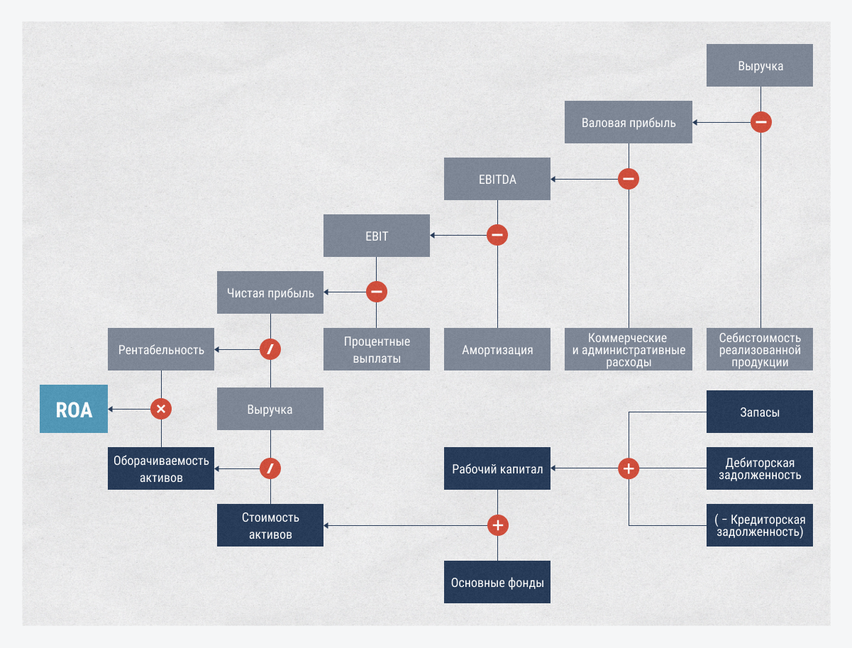 Двухфакторная модель определяет влияние двух факторов на рентабельность активов (ROA):