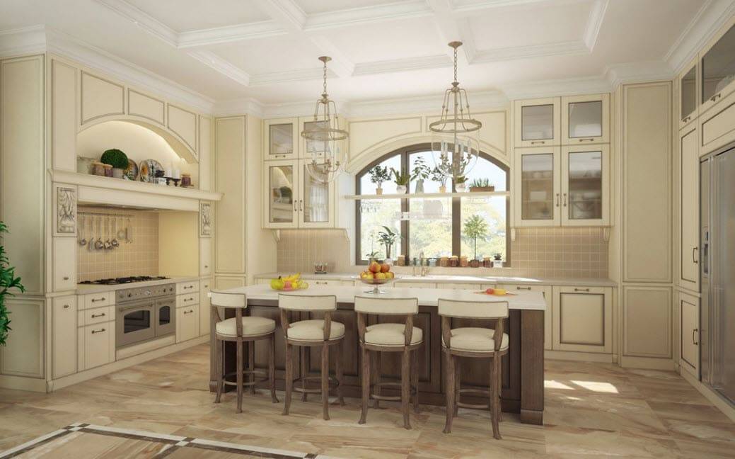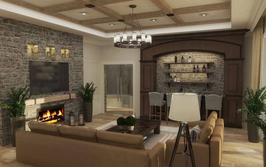 На первом этаже располагается холл, три гостиные, кухня, столовая. Последние мировые достижения в технике для кухни будут служить, и приносить только удовольствие от их использования. Прекрасная столовая с большим столом, всегда ждет домочадцев к ужинам. Каждая гостиная имеет свое предназначение, это можно понять, судя по их названию – музыкальная, телевизионная, каминная.