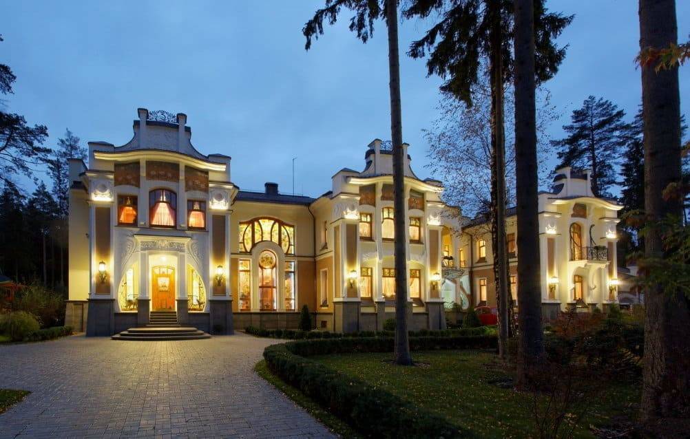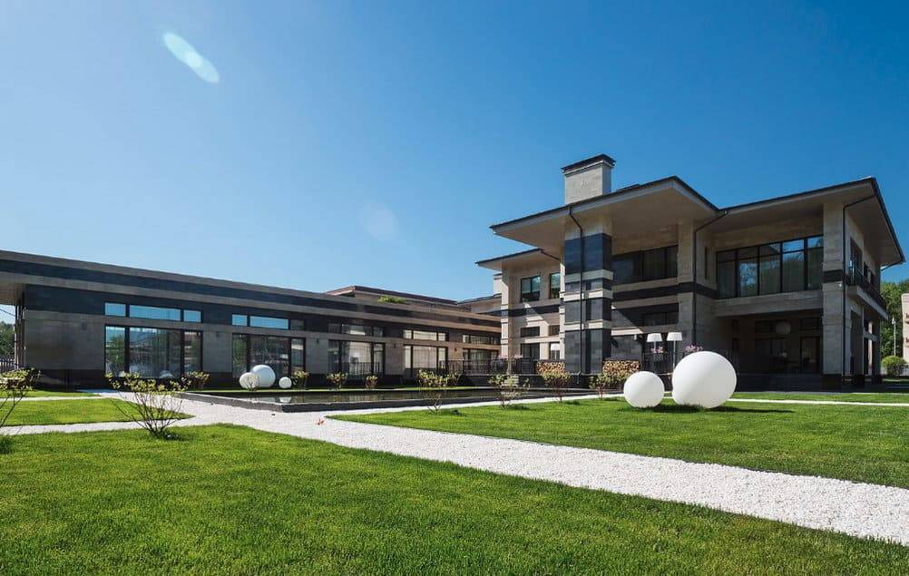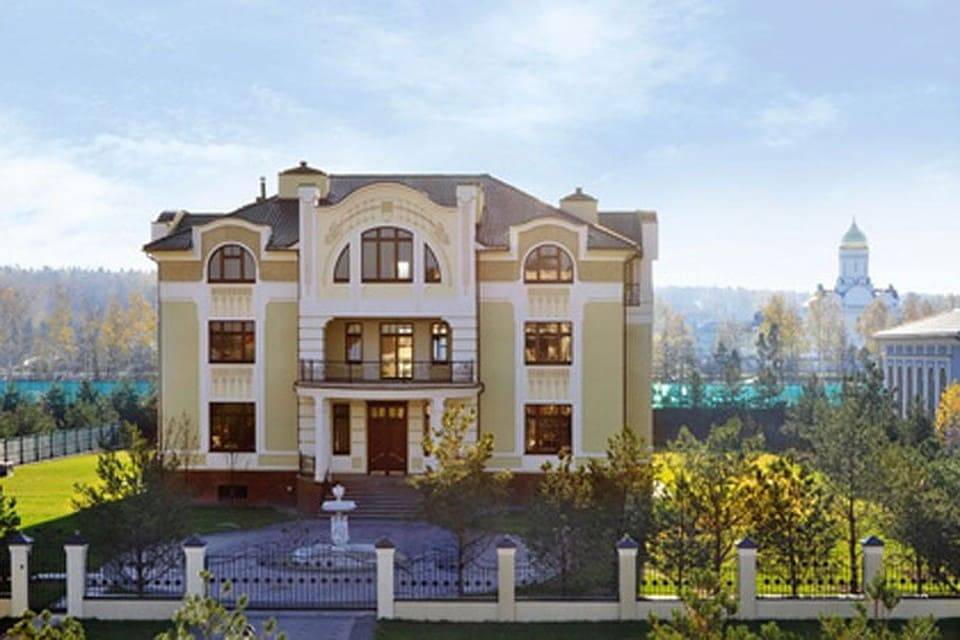 Если составлять топ-10 самых дорогих домов на Рублевке, то несомненным лидером станет дом в элитном поселке Сады Майендорф. Уникальность коттеджа в необычной архитектуре: дом построен по кругу, то есть в нем нет углов. Конечно, поражает и оснащенность внутри, дорогая мебель, мрамор и многое другое, что делает данный дом премиум-класса. В планировке дома предусмотрено огромное количество помещений: в цоколе располагаются холл, кладовая, санузел, гардеробная, винный погреб и массажный кабинет. Первый этаж – это холл, гардеробная, санузел, кабинет, гостиная обязательно с камином, столовая и отдельная кухня, бассейн, сауна, хаммам. Второй и третий этажи – это 8 спален (по 4 на каждом) и санузлы.
