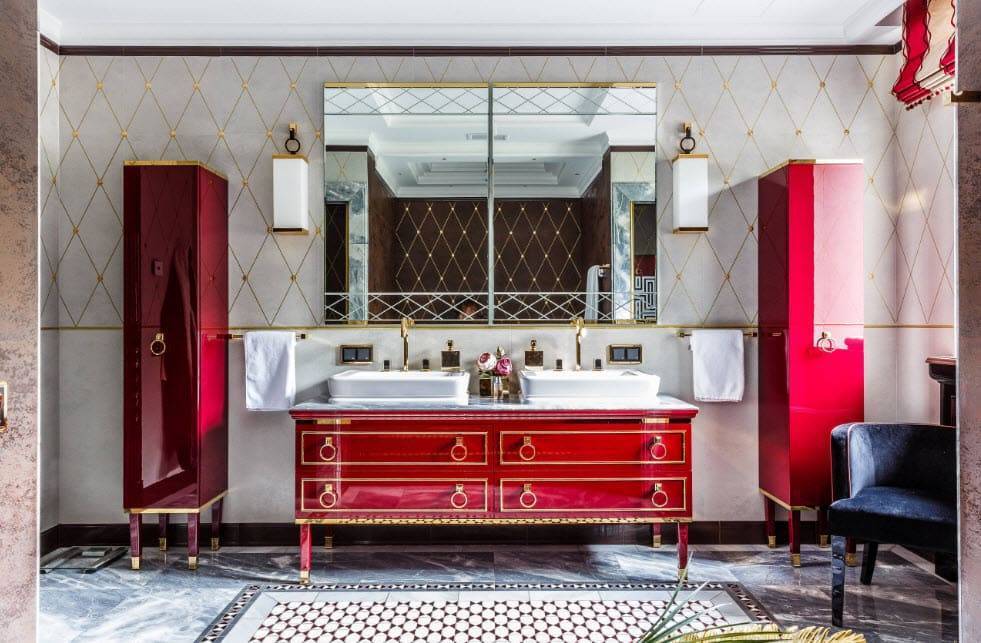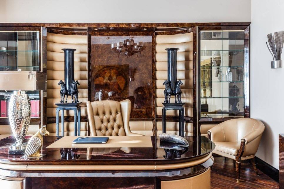 Мебель, которая придает помпезному оформлению уют, сделана специально для этого проекта на лучших мировых фабриках. Она была доставлена из Италии, Венеции, Австрии.