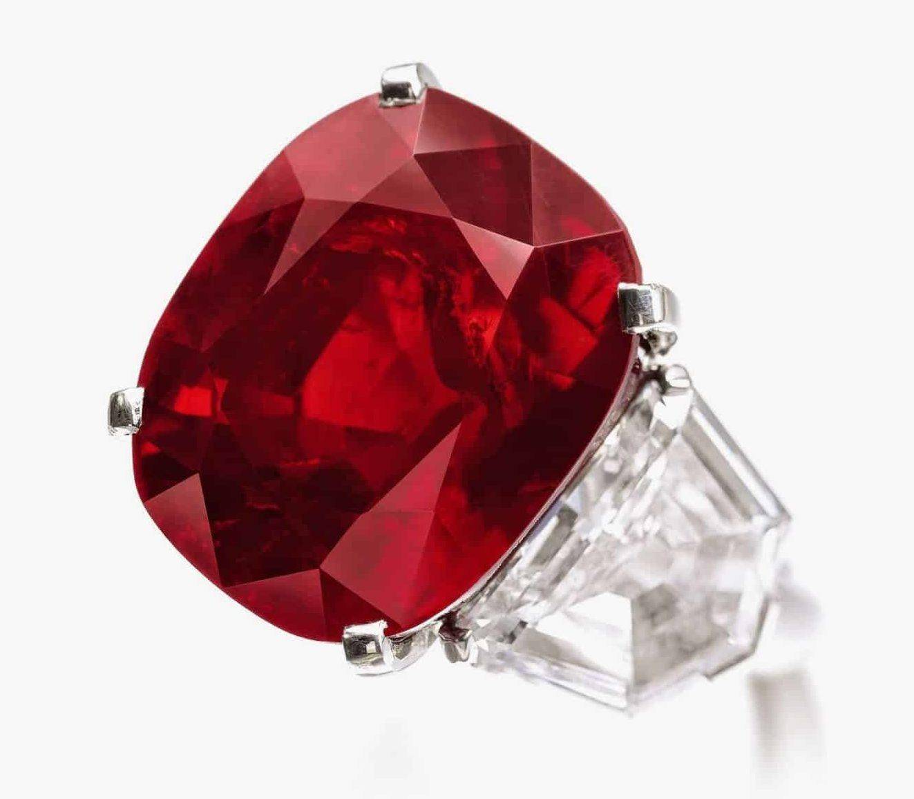 Рубин из группы корундовых. Высокую стоимость имеют самоцветы из Азии, цена за карат — от 15 тысяч $. Крупные экземпляры с идеальной окраской продают на аукционах, например, рубин из Бирмы в кольце от Картье был куплен за 30 млн. долларов.