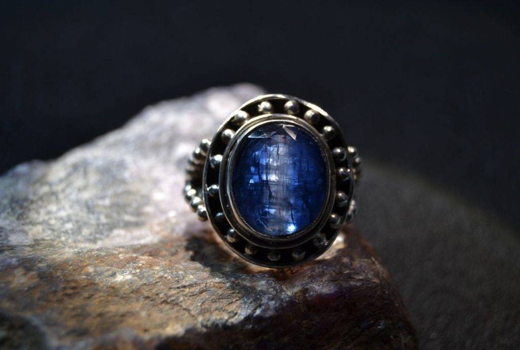 Кианит — необычный драгоценный камень. Его твердость колеблется от 4 до 7,5 по шкале Мооса, в зависимости от оси кристалла. Цвет серовато-голубой. Некоторые коллекционеры до сих пор умудряются резать кианит, несмотря на его расщепленность и хрупкость.