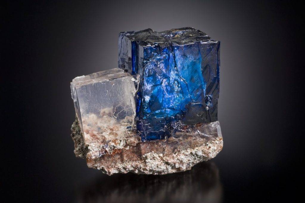 Азурит или медный лазурит является производным медных руд. Минерал известен своим глубоким синим цветом, как чистым, так и с оттенками фиолетового.