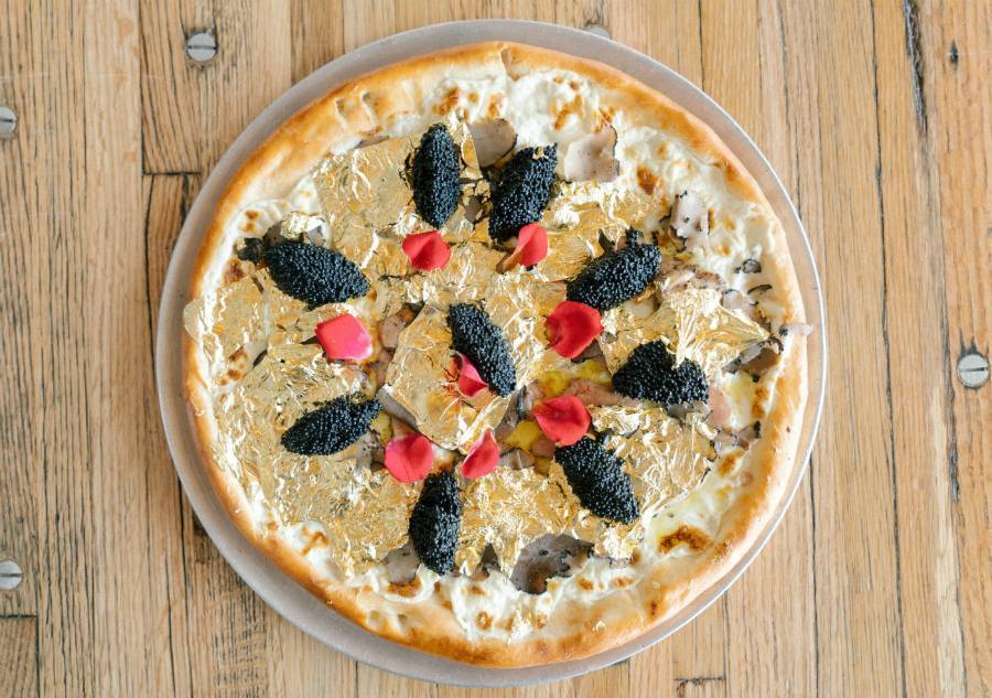Пицца стоимостью 50 долларов за один укус — это круто! Для того чтобы хорошенько распробовать эту пиццу с поджаристой тонкой коркой, украшенную съедобными цветочными лепестками, увенчанную белым сыром «Стилтон» и имеющую в своем составе фуа-гра, французские трюфели, осетровую икру и тонкие золотые (настоящего съедобного золота) чешуйки, необходимо взять с собой хотя бы еще четырех друзей, чтобы на каждого пришлось по 400 долларов. Заказывается предварительно!
