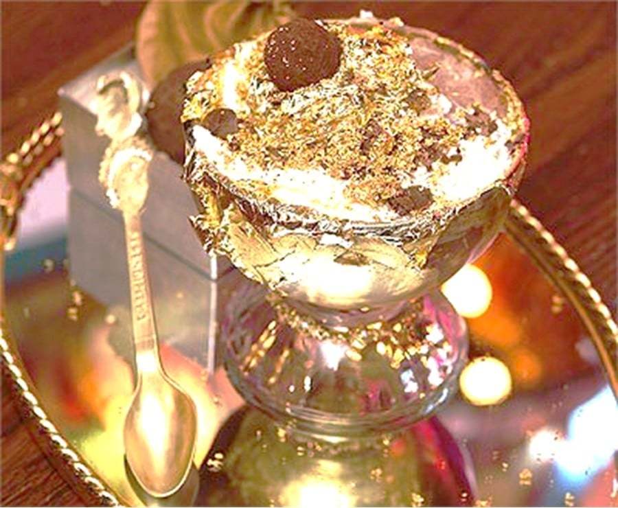 Подают этот десерт в заведении Serendipity III, которое названо скромно – кафе. Богатые посетители успели полюбить блюдо под названием Golden Opulence Sundae, которое обойдется в 1000 долларов. Это вкусное мороженое, для приготовления которого использовались бобы таитянской ванили. Украшением служит самый дорогой расплавленный шоколад Amedei Porcelana, сверху которого аккуратно уложен листочек из съедобного золота. Дополнением к изысканному десерту стали цукаты, десертная икра и золотой миндаль. Однако такой заказ необходимо делать за 48 часов до планируемой трапезы, чтобы кулинары успели создать свой шедевр.