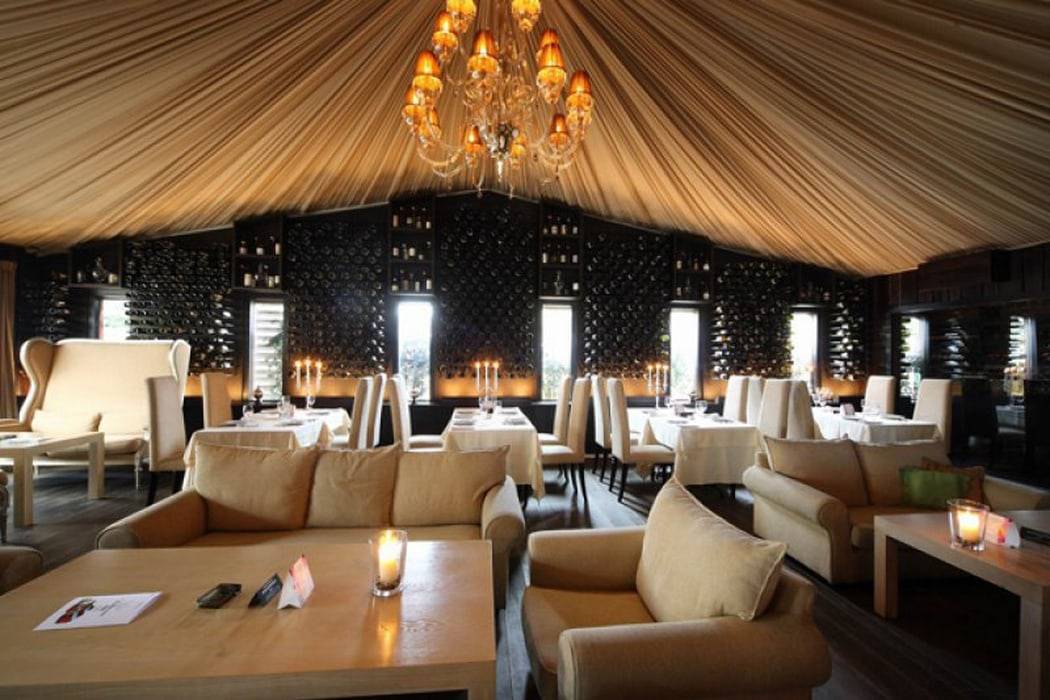 Если перечислять самые дорогие рестораны Санкт-Петербурга, рейтинг будет неполным без заведения “Ландскроан”. Это настоящая визитная карточка города, прельщающая удобным расположением и транспортной развязкой. Вокруг – природа, но атмосфера внутри ресторана гораздо лучше. Тут просторная парковка и даже вертолетная площадка для “больших” гостей. Тут часто празднуют свадьбы. Кухня – тоже на высоте, а мебель кажется произведением искусства. Летом в ресторане работает терраса с подсветкой.