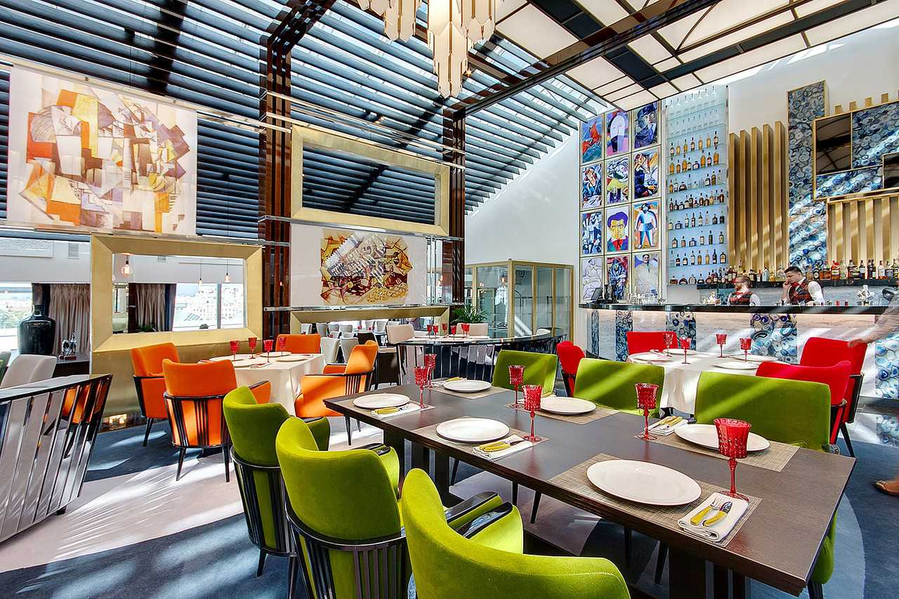 - Из окон заведения Sky Bar, расположенного на 18-ом этаже гостиницы «Азимут Отель Санкт-Петербург», весь город виден как на ладони. Интерьер оформлен в минималистическом стиле, что не мешает ему быть уютным и располагающим к отдыху. Меню предлагает популярные русские, скандинавские и азиатские блюда.