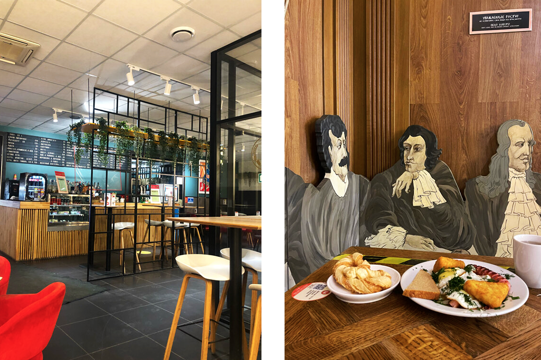 Еще одно популярное обеденное место — бистро «Щелкунчик», которое не раз попадало в соцсети со своей наружной рекламой на грани фола. Здесь самообслуживание, так же как и в столовых, а интерьеры аккуратные и комфортные. Цены в «Щелкунчике» более чем привлекательные. В пределах 250-300 руб. на человека можно плотно пообедать (суп, горячее, салат и напиток). Помимо прочего, у «Щелкунчика» есть приятная опция — доставка блюд прямо к вагону на Московском вокзале.
