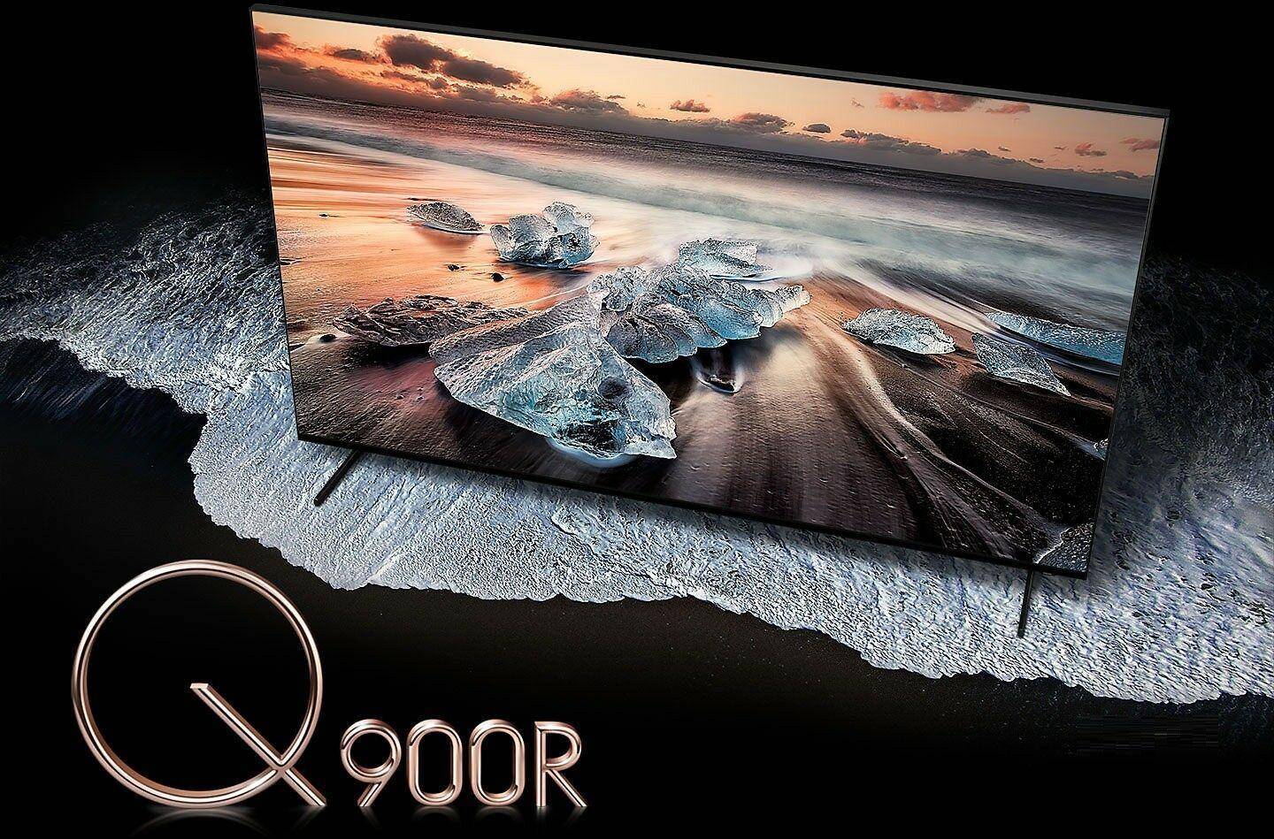 Эстетичный черный корпус с тонкими почти незаметными рамками. Приобрести Samsung QE98Q900RBU можно по средней цене квартиры – от 4 млн. руб.
