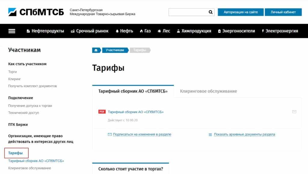 Величина существующих на бирже тарифов разнится в зависимости от секции. Минимум составляет 5 тыс. руб. в год, и он достаточен для участия в торгах в секциях:
