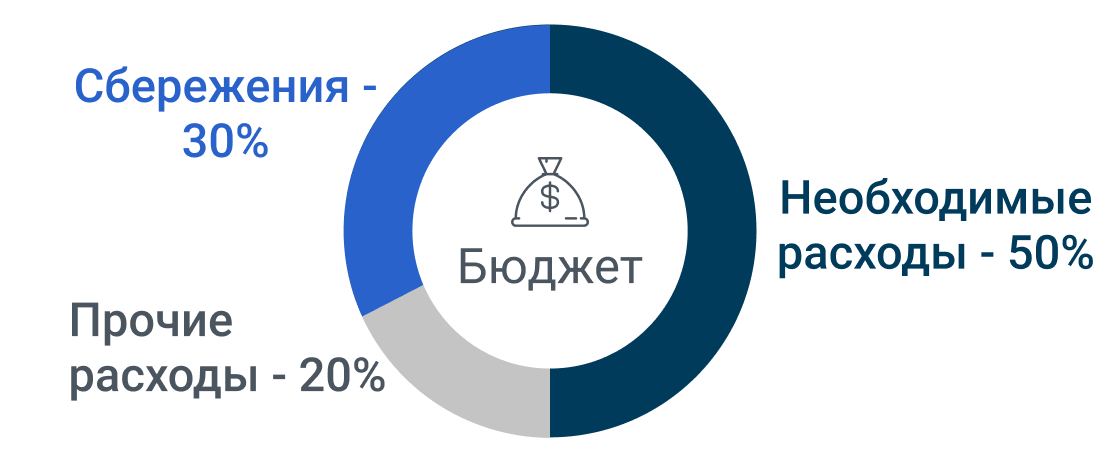Сбалансированный вид личного бюджета характеризуется наличием существенной доли расходов и средней доли сбережений. Иногда применяется бюджетное привило 50/20/30. При нем 50% – это необходимые расходы на жилье, продукты, транспорт и т.д., от которых нельзя отказаться. 20% или 30% откладываются на сбережения. Оставшаяся часть тратится на необязательные расходы и потребительские кредиты.