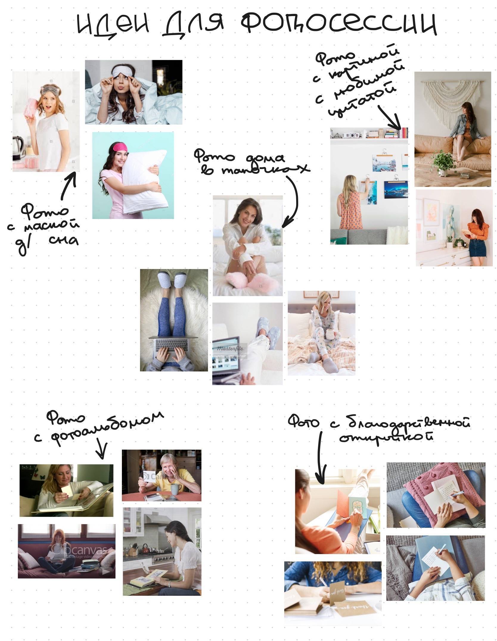Например, я поискала референсы домашних фото в Pinterest, в поисковике и в Инстаграме и собрала вот такие примеры.