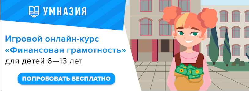 Ещё можно пройти уроки по финансовой грамотности в «Умназии». Это онлайн-платформа, где есть целый интерактивный курс по финансовой грамотности для младших и средних школьников. В программе курса 5 ступеней, а задания сделаны в игровой форме. Они улучшат навыки обращения с деньгами, разовьют самостоятельность ребёнка, повысят интерес к учёбе, познакомят с банковскими продуктами и главными законами денег.