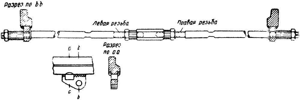 Рис. 4. Стрелочная тяга, устанавливаемая на трамвайном пути, и крепление ее к перу.