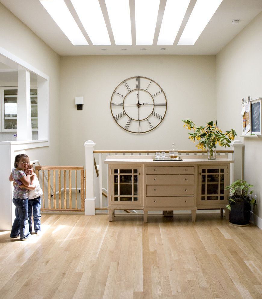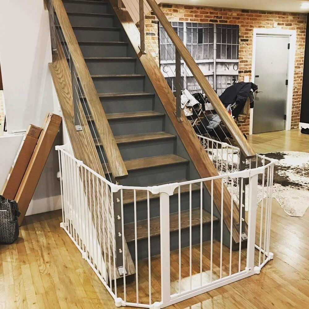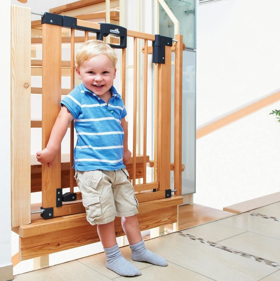 Надёжнее всего будет просто закрыть доступ на лестницу для ребёнка — пусть поднимается только в сопровождении взрослых. Идеально справляются с такой задачей ворота безопасности, которые временно устанавливаются на входе на лестницу. Когда ребёнок вырастет, ворота демонтируются, и лестница приобретает свой первоначальный вид.