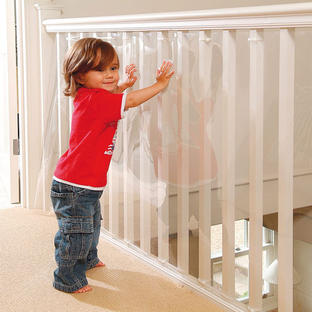 Такая защита на перилах предотвратит риск того, что малыш застрянет между балясинами.