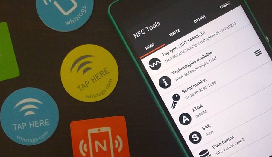 На заметку! Такие метки пассивны. Им не нужно получать питание для хранения данных. Они имеют небольшой объем, необходимый только для закрепления команды. Такие метки носят название TecTiles. Для их сканирования достаточно поднести смартфон, после чего установленная пользователем задача будет сразу же выполнена.