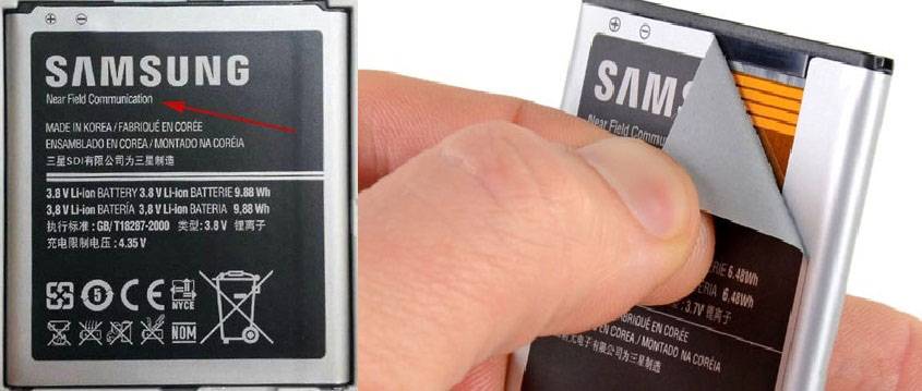 Наличие NFC на аккумуляторе смартфона SAMSUNG