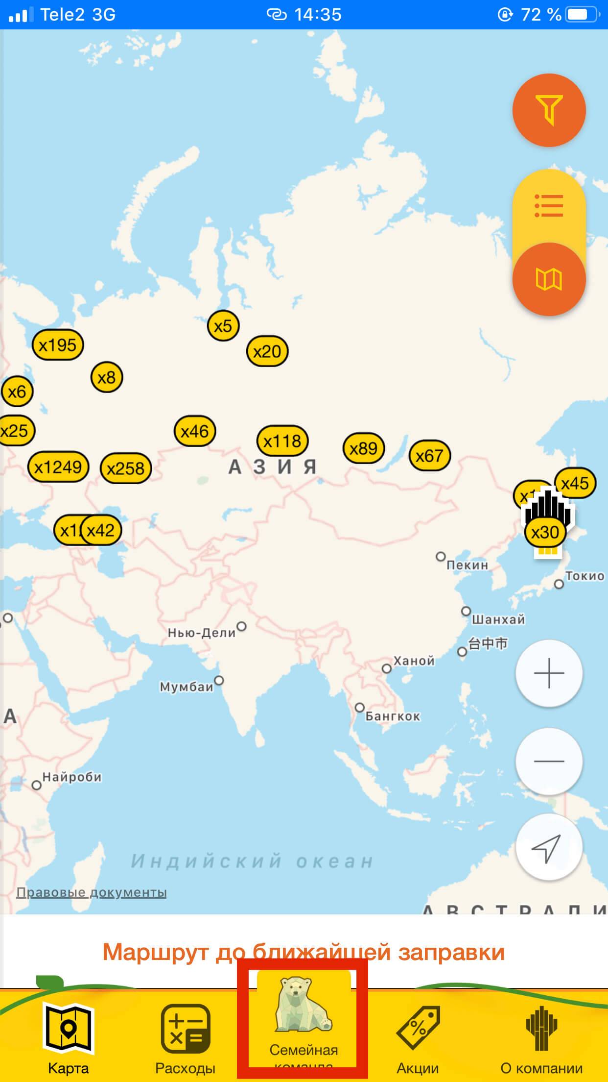 В приложении можно построить маршрут до выбранной АЗС или вести учет расходов, однако в нем нельзя изменить личные данные.