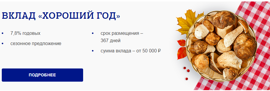 Для открытия нужно 50 тыс. руб. на 367 дней, годовой процент 7,8.