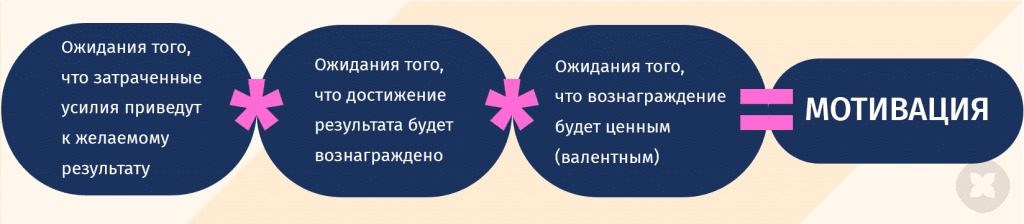 - E (ожидание) – восприятие человеком того, что усилия приведут к результатам. Другими словами, оценка человеком степени, в которой усилие фактически коррелирует с производительностью.