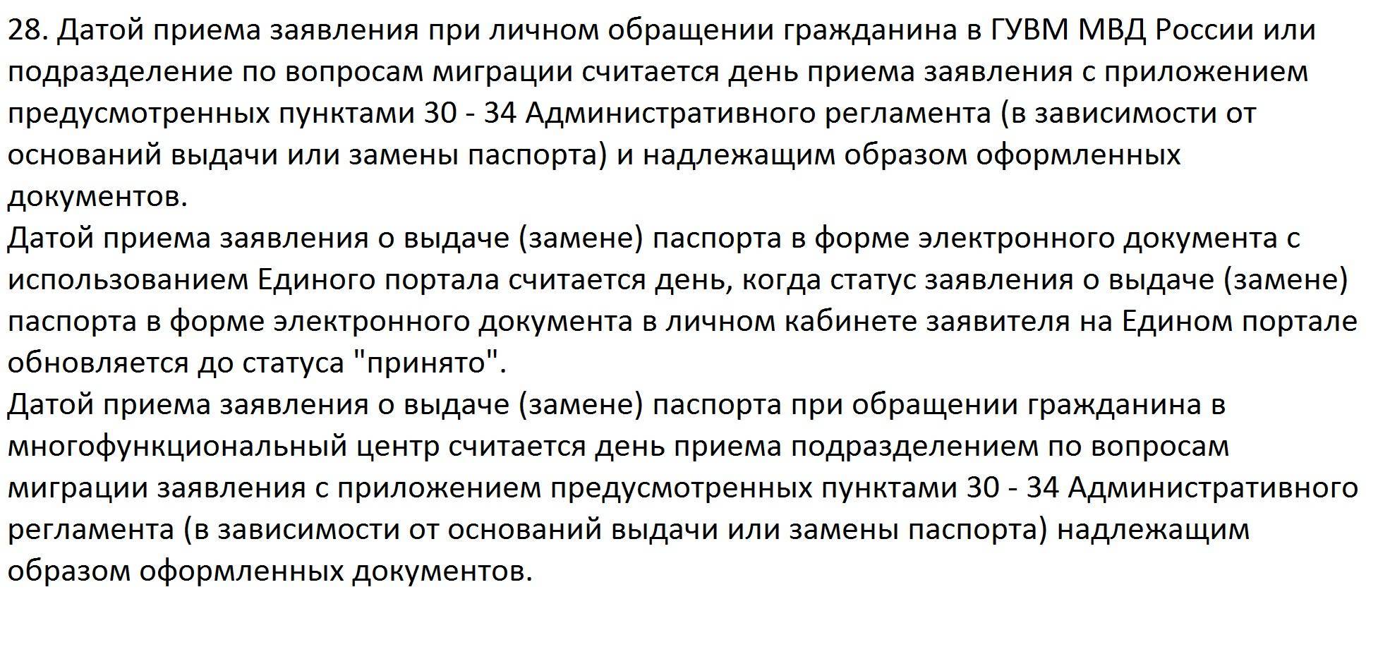 В остальных случаях, сроки замены паспорта будут составлять 30 дней, например: