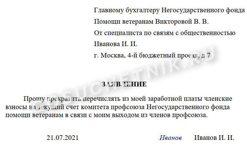 Как выйти из профсоюза, образец заявления: бесконфликтное решение вопроса