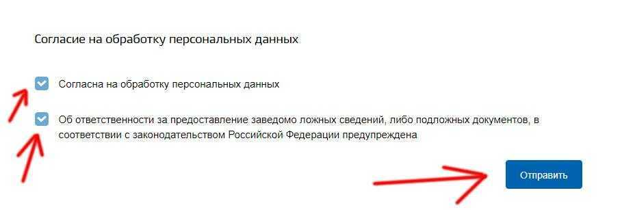 - проставить галочку о согласии обработки данных и отправить заявление.