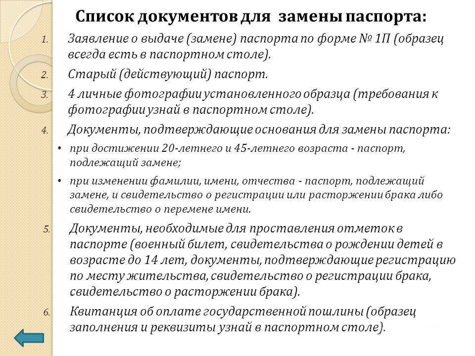 Документы, необходимые для замены паспорта в 20 лет в 2022 году