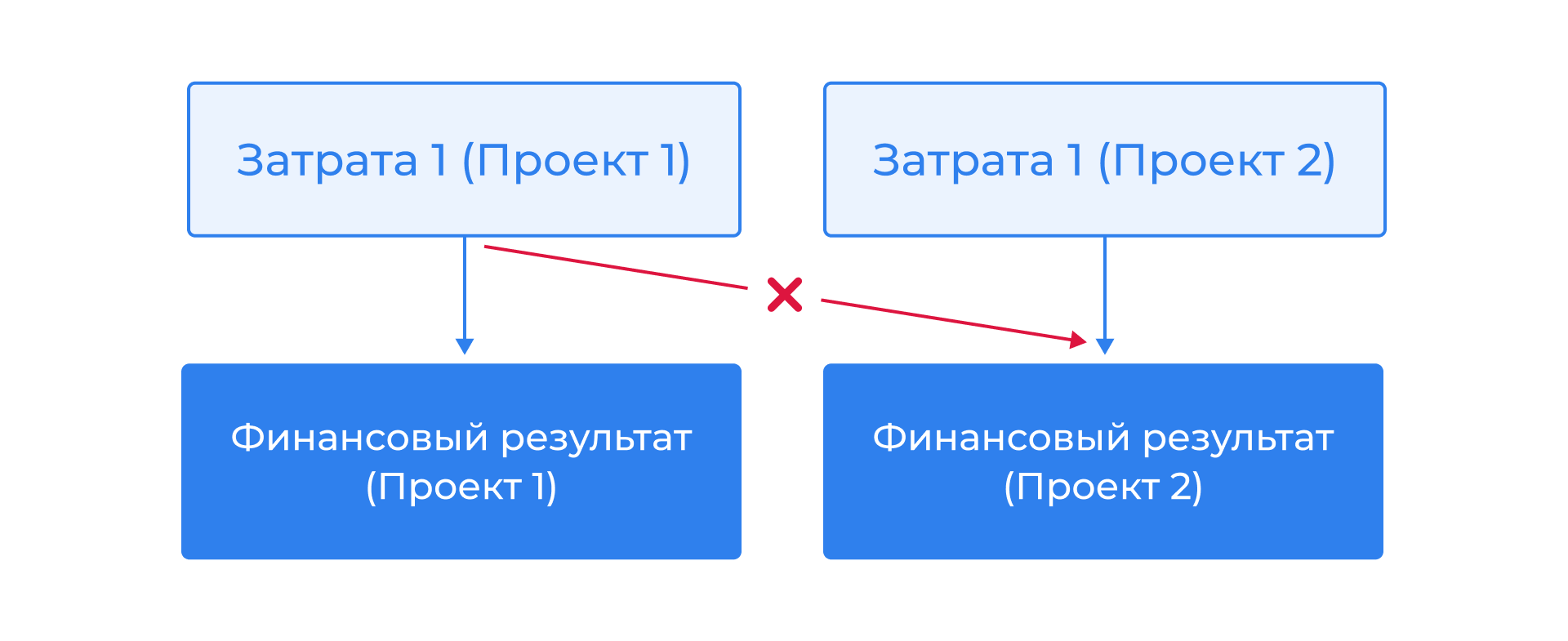 жесткое разделение и недопустимость списания затрат, поступивших с одним видом аналитики, на финансовый